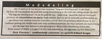 Eerlijk is eerlijk toen gisteravond het Langedijker Nieuwsblad op de deurmat viel en ik hem daarna doorbladerde, is hij mij niet opgevallen.