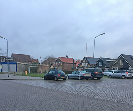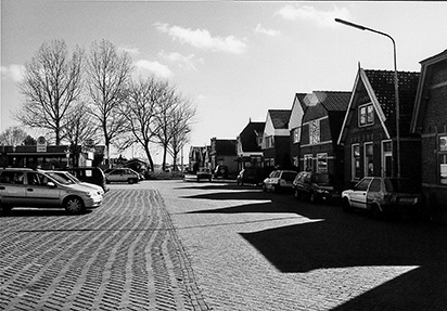 Op deze foto het Havenplein vanuit een andere hoek. Het derde en vierde huis vanaf links op de foto zijn gebouwd op de plaats van de oude Broeker sluis.