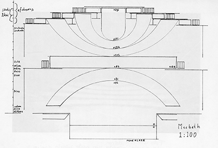 Het was de taak van de chef-inspicient van het gezelschap om vanaf het eerste overleg met de decorontwerper deze te wijzen op de onmogelijkheden in een ontwerp, maar dat kwam niet altijd over en zo bleven er altijd wel zaken inzitten die voor sommige theaters onuitvoerbaar leken. Ook gebeurde het wel dat er voorstellingen werden verkocht aan theaters waar het decor helemaal niet kon staan en dus ook niet verkocht had mogen worden. Bij het Publiekstheater speelden we MacBeth in een decor van Frank Raven. Op zich was het geen ingewikkeld decor, maar bestond het uit een schuinoplopende vloerconstructie van praktikabels dat één groot geheel was met elkaar.